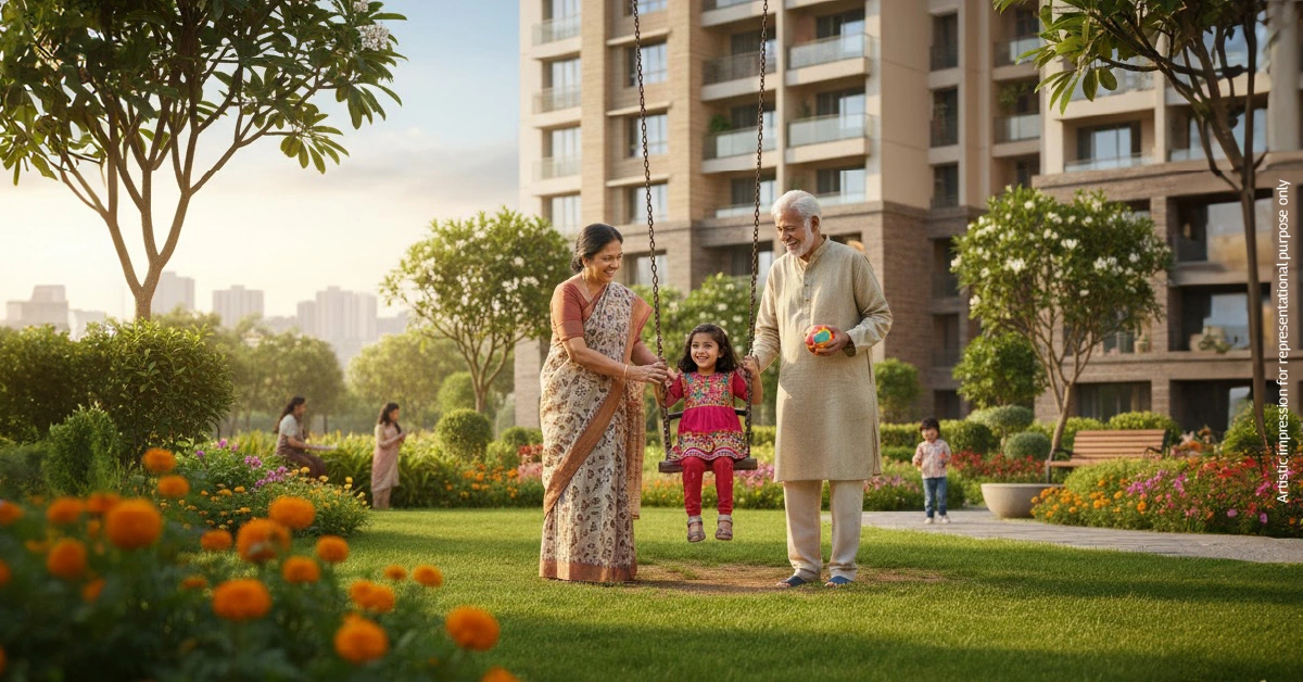 Imagine ending your workday with a walk-through shaded gardens, surrounded by fresh air and natural silence — this is what Mahindra communities are built for.
