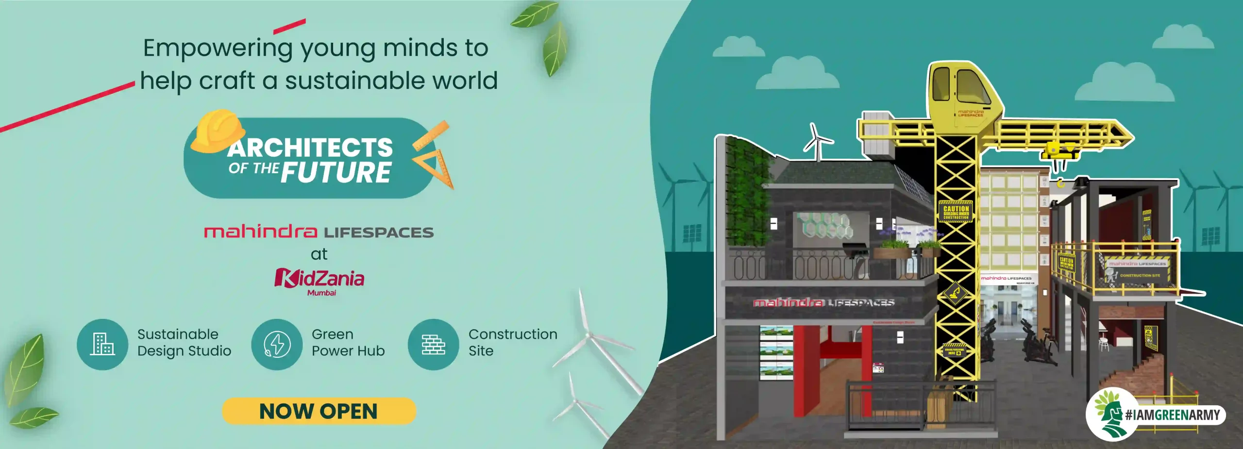With a 100% green portfolio since 2014, Mahindra Lifespaces aims at building only net zero buildings from 2030 onwards. Our commitment to sustainability has always been central to our promise of ‘Crafting Life’. To educate and build awareness around sustainable design and construction, Mahindra Lifespaces has joined hands with KidZania Mumbai to empower young learners to become ‘Architects of the future’. The experiences are intended to engage them in an interactive environment to learn more about sustainability through play and exploration.