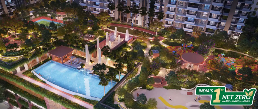 Spread across 7.74 acres, Mahindra Vista exemplifies sustainable living with a low tower footprint of under 12% and expansive green spaces. This includes 1.92 acres of landscaped greens on mother earth and an additional 1.6 acre podium top adorned with a signature-designed colonnade and an infinity-edge pool. Residents will also enjoy a state-of-the-art, biophilic-roof clubhouse spanning 28,000 sq. ft., alongside high-street retail, and convenient shopping options.