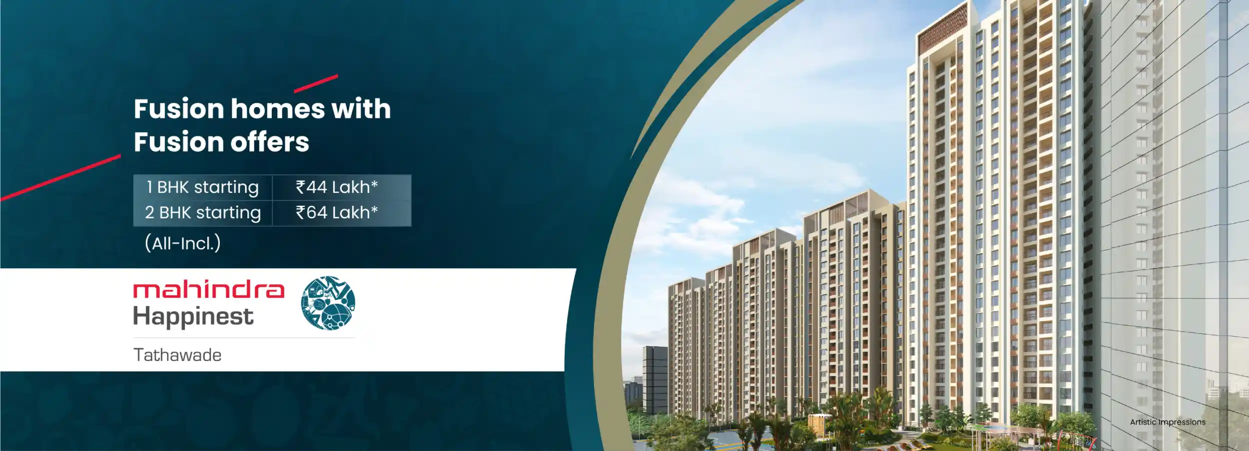 The project “Happinest Tathawade Phase-1”, “Happinest Tathawade Phase-2” & “Happinest Tathawade Phase-3” is registered with MAHARERA registration No. Phase 1 - P52100028049 | Phase 2 - P52100045388 | Phase 3 - P52100052559 and valid upto: 31/12/27. The details are available on https://maharera.maharashtra.gov.in. The project is being developed by Mahindra Lifespace Developers Limited in a phase-wise manner. The images shown here are Artist’s impressions and stock images for representative purposes only. For more information, please contact our sales office at Mahindra Happinest Tathawade, besides MTU, opposite HP petrol pump, Pune-Mumbai highway, Jeevan Nagar, Tathawade, Pune-411033. Other T&C apply.